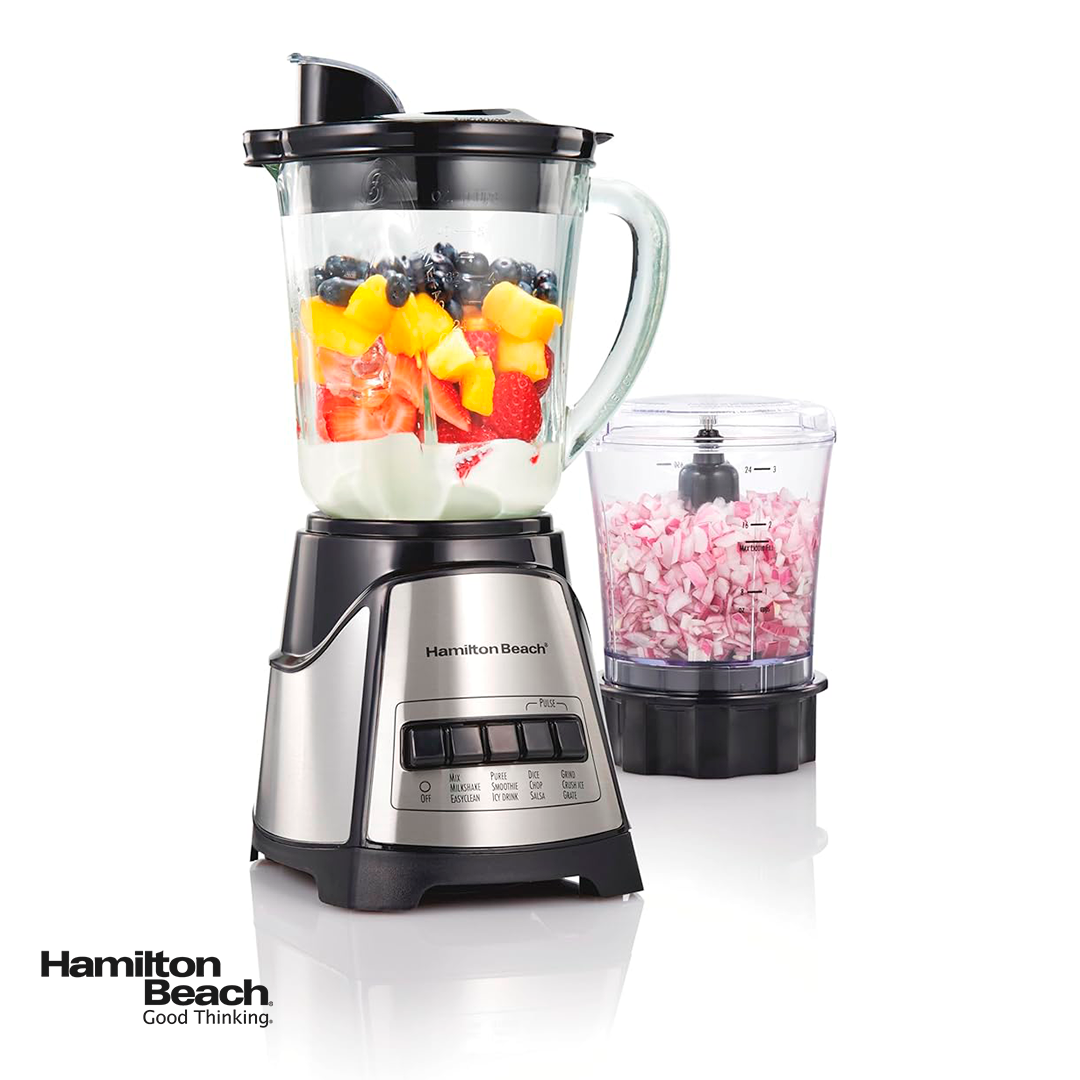 Disfruta de alto rendimiento con la Licuadora Power Elite 2 en 1 Multifuncional 1.25L de Hamilton Beach. Esta sofisticada licuadora combina funcionalidad y potencia con su diseño moderno y elegante. El poderoso motor de 650 Watts ofrece un rendimiento supremo para licuar todo desde verduras hasta hielo, mientras que el recipiente de alta calidad de 1.25 L de capacidad te permite preparar una gran cantidad de bebidas sin hacer demasiadas paradas. No busques más, con la Licuadora Power Elite 2 en 1 Multifuncional de Hamilton Beach obtendrás los resultados que deseas para tus recetas.