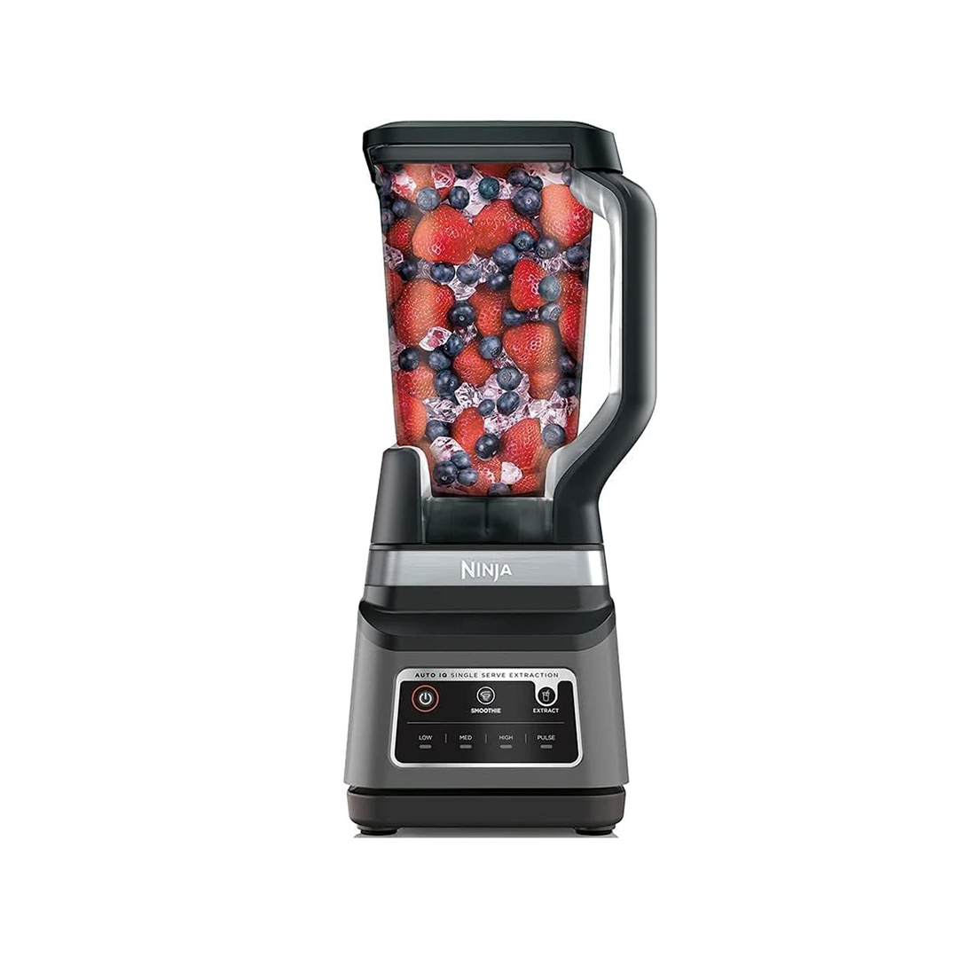 NINJA Licuadora Profesional y Extractor de Nutrientes DUO BN750 La NINJA BN750 es una licuadora profesional con sistema innovador, potente y versátil. Equipo 2 en 1: es licuadora y extractora de nutrientes. Cuenta con un nuevo diseño moderno y un motor súper potente que te da hielo perfectamente triturado, ¡Un electrodoméstico de ensueño!. Prepare las bebidas que más te gustan sin necesidad de adivinar los tiempos de trituración ni extracción con los programas inteligentes Auto-iQ® que hacen el trabajo por ti. Además, es práctica y segura: Su función "PULSE" te permite poner en marcha el producto de forma intermitente de acuerdo a lo que necesites o al contenido del vaso. Su cierre de seguridad impide accidentes por descuidos y conserva la limpieza de tu cocina para evitar derrames. Además no tendrás que preocuparte es de FÁCIL LIMPIEZA, las piezas de la licuadora se pueden lavar en el lavavajillas. LA NINJA BN750 INCLUYE: Jarra de 2.1 litros con tapa dosificadora y cuchilla de trituración Motor de 1200 Watts de 4 velocidades manuales y 2 programas de Auto IQ. 1 Vaso portátil de 24 onzas con aspa 1 tapa con boquilla 1 Cuchilla para triturar. Disfruta de Smoothies, batidos y extrae con el extractor.
